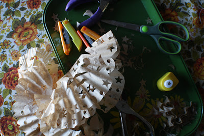 Find a happy place to hang and admire. Now go bake some Christmas cookies! This project uses up all sorts of nifty developmental elements for your kiddo; scissor cutting, measuring, practicing the up and down of the sponge painting, small/fine motor skills during the balling and glueing, patterning and color fun in selecting their colors and shape recognition using "circles" in the triangle. This is a less than open-ended project but has its bits of usefulness in preparing your kiddo for following instructions, planning their vision within a set of instructions and using up all those nifty skills they are developing. I hope you enjoy this project and if you do make a tissue tree, please add it to the