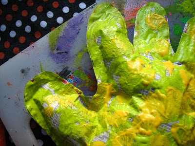 A big hoop makes for a bigger tree. Don't go too small. Kids may have little hands but their fine motor skills are still in dress rehearsal. For an added step, have your kidlet paint the hoop before beginning. You can also do a snowman with a button face or a felty wreath with beaded baubels. Happy Holidays!