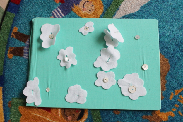 I am loving our new kitchen/large art area set up! We used to have a series of tables that were too tall for the kiddos to sit at. They could sit but their feet would dangle and they would grow super wiggly. I firmly believe that having their feet on the ground keeps them focused and grounded so the old big blue table that used to hold fine motor activities was moved into the kitchen! It poses its own issues (our chairs seats hit too high) but so far it is working nicely. I want to cover it with a solid oilcloth or maybe a woodgrain...anything to mask that blue! My dream is to get wooden chairs. Someday!